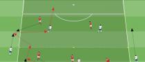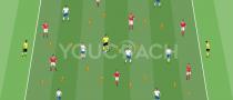 Conditioned game to develop ball possession inside limited zones and possession triangles |