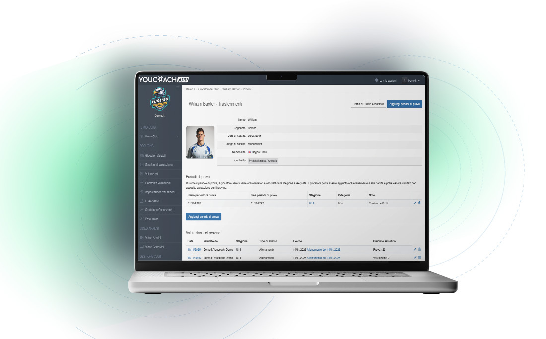YouCoach App, with the dedicated module YouCoach App Scout, allows clubs to structure the entire player lifecycle, from initial observation to operational integration into the team, through a single working environment.