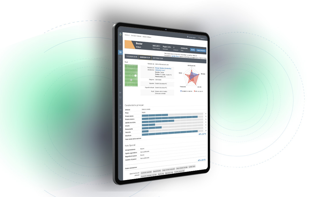 The scouting phase is managed through digital workflows that allow information to be collected in formats customized to the club's needs.