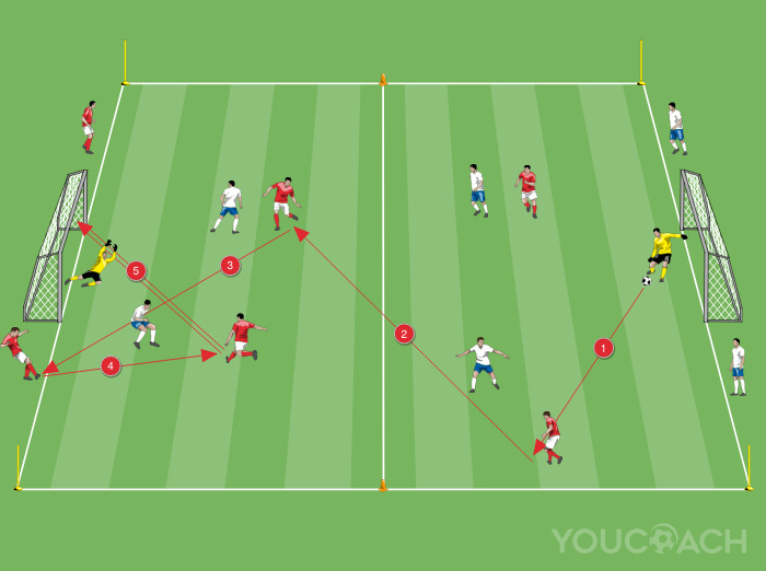 - Maintain high intensity throughout the drill in all phases of the game