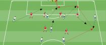Technical-coordination drill with and without the ball, ending with a 1 v 1 situation for a shot on goal |