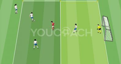 2 v 1 situation with the forward that attacks the goalkeeper to shoot at goalPages