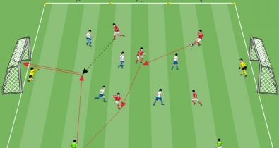 Small sided game 6 v 6 with insertions (without the ball) to shoot for the goal and to attack the goal by crossing the ballSoccer Tactics