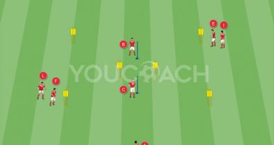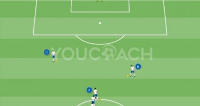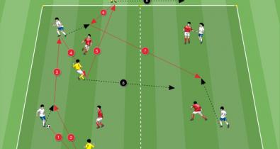Sequence of passes with attacking movements toward the goal and overlapping with three playersSoccer Tactics