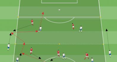 Exercise to train the team in possession to draw opponents to the ball in order to free up passing lanesSoccer Tactics