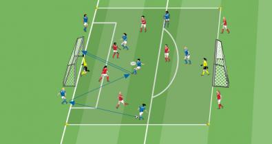 Exercise for shooting at goal with 3 players, with unmarking movements and oriented receivingGoalkeeper Skill
