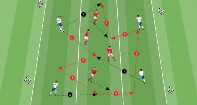 A stimulating exercise to train the team in possession of the ball to maintain constant mobility in order to be as unpredictable as possible to the opposing teamSoccer Tactics