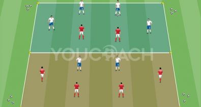 6 v 6 tactical match with field divided into two zonesSoccer Tactics