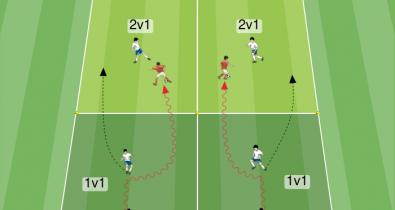Exercise with 1 v 1 game situation and subsequent 2 v 1 and finishingPages