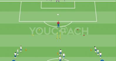 Exercise for dribbling, finishing, and shooting on goal with cognitive inputsSoccer Tactics