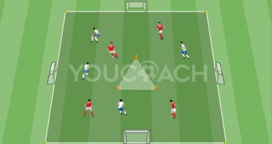 4 v 4 ball possession with quick transmission and losing the marker to encourage central penetrating passSoccer Technique