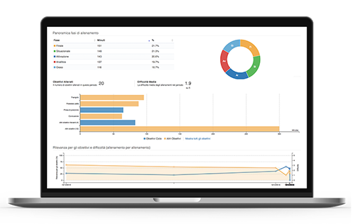 The page dedicated to players' statistics collects, organizes and optimizes automatically a series of data that each coach can refer to at all times to have an overall look of their work or to look at workout's cycle details.