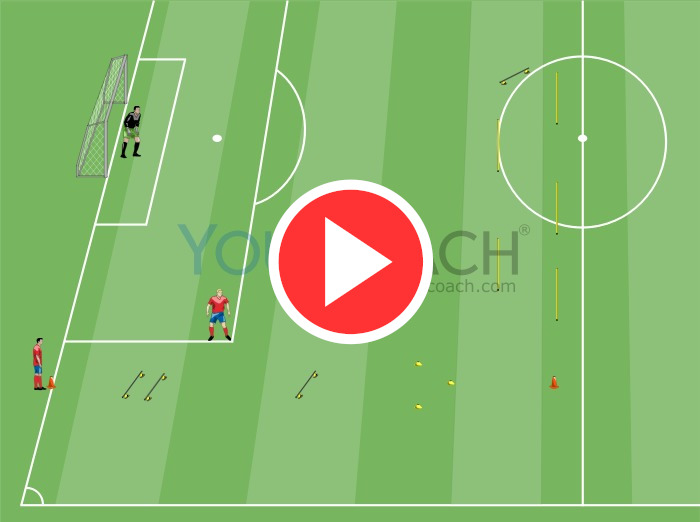 1 vs 1 duel with changes of direction and the choice to finish in one of two goals