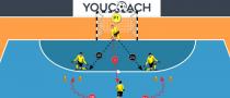 - In the first zone, a 5 v 3 is played with the aim of conquering a gate while dribbling
