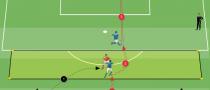 Game construction proposal for 4-4-2 system with one striker moving towards the ball to facilitate the other one moving into space |