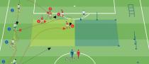 Dribbling, Shooting, 1v1 attacking, Anticipation, Tackling, Explosive Strength, Aerobic capacity, Acyclic speed, Coordination, Balance, Proprioceptive informations, Anticipation, Space-time differentiation, Aerobic capacity, Plyometrics, Quickness, Dribbling to prevent the opponent, Feints and tricks, Finishing, Tackling, 1 versus 1, Marking up in anticipation |