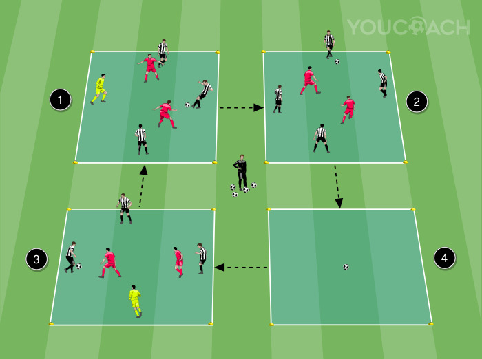 Small-sided game 4 v 4 + 2 support players for finishing