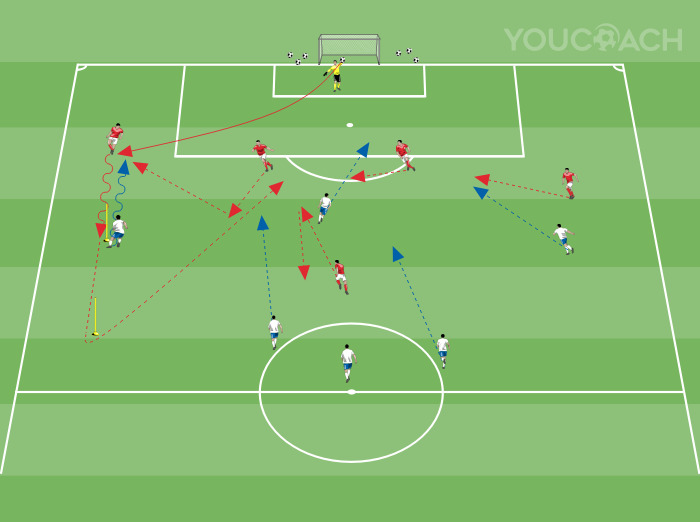 Transition - Game situation to train the defensive position to carry out an immediate retreat after losing the ball. -