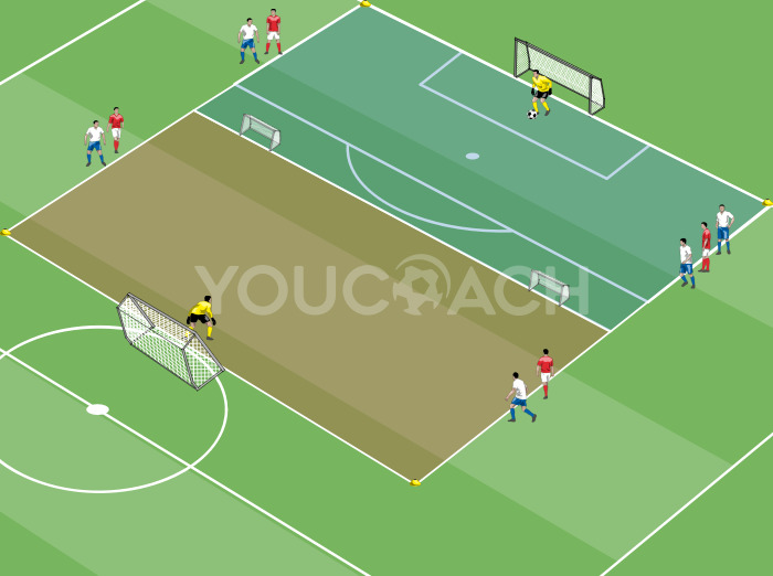 7 v 4 thematic match with build-ups from the back for finishing on goal