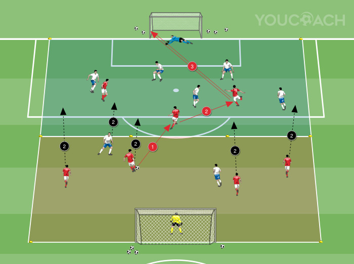 Possession - Thematic match of defenders and midfielders against offensive players to build the play with finishing on goal and transitions -