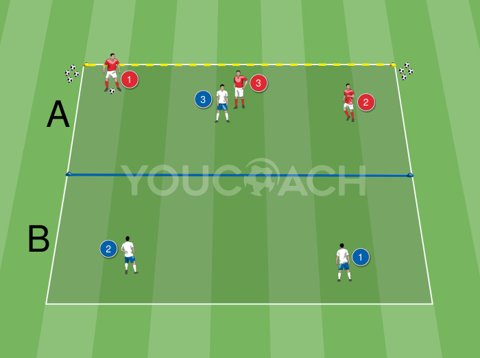 Creating space - Ball possession in numerical superiority with two side supports, useful for oriented control and give-and-go in a situational context. -