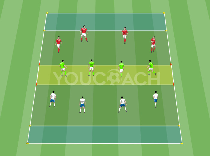 Possession - Possession 8 v 4 in a zone-split rectangle, working on transitions and looking for width -